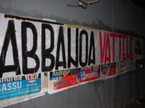 La città tappezzata di striscioni |
